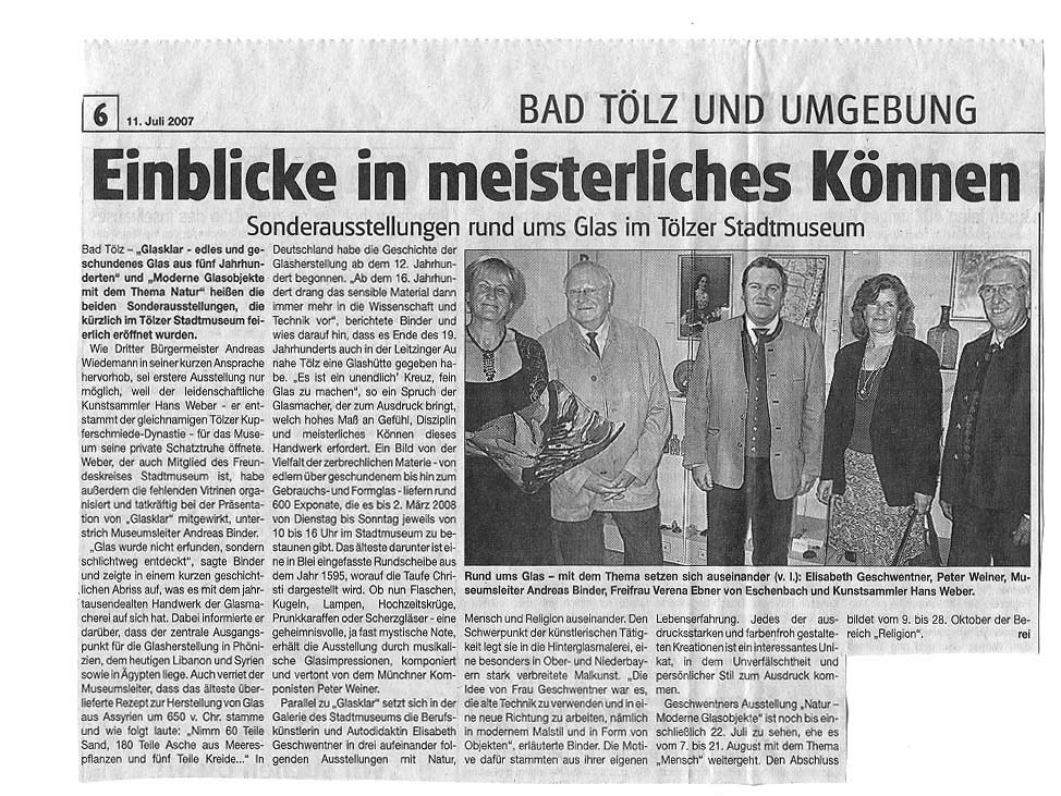 Sonderausstellungen rund ums Glas im Tölzer Stadtmuseum