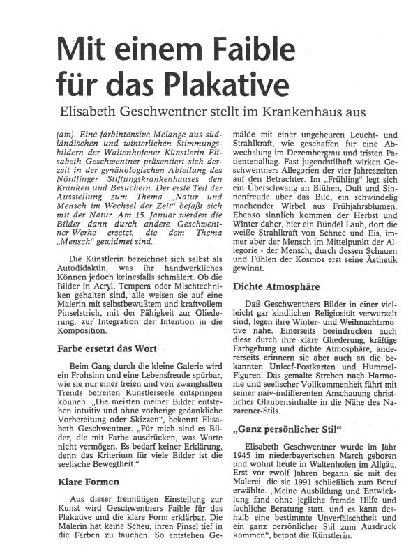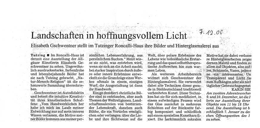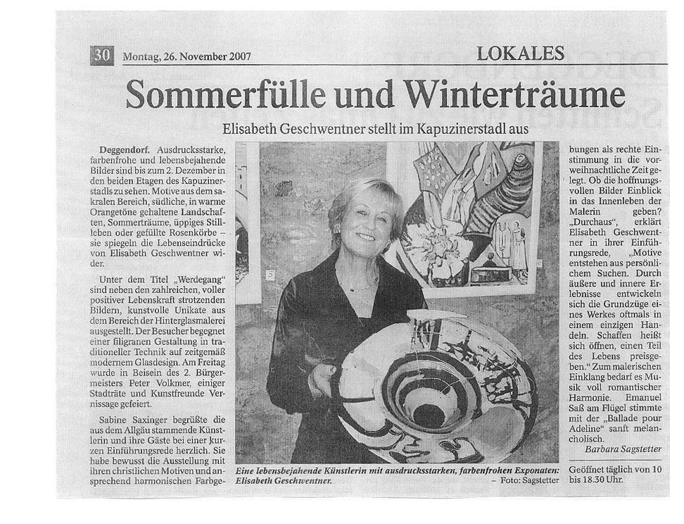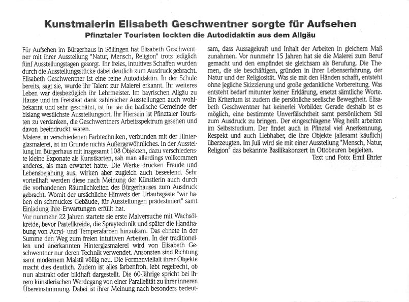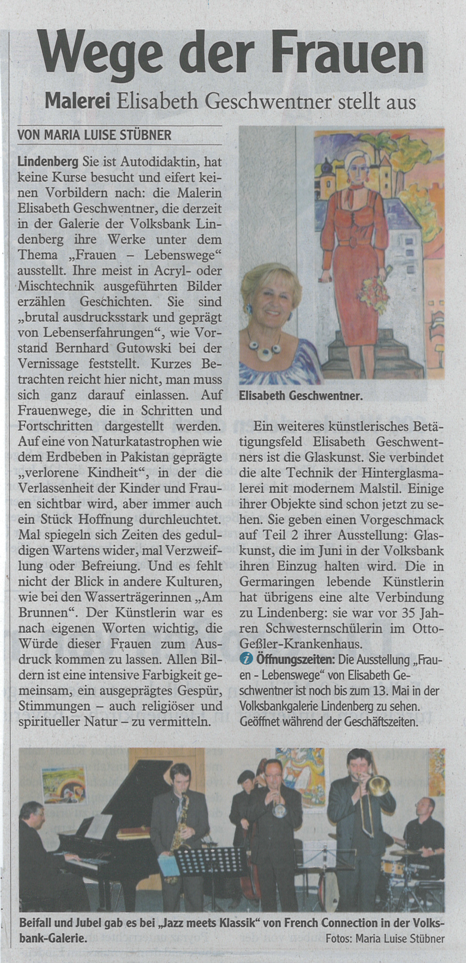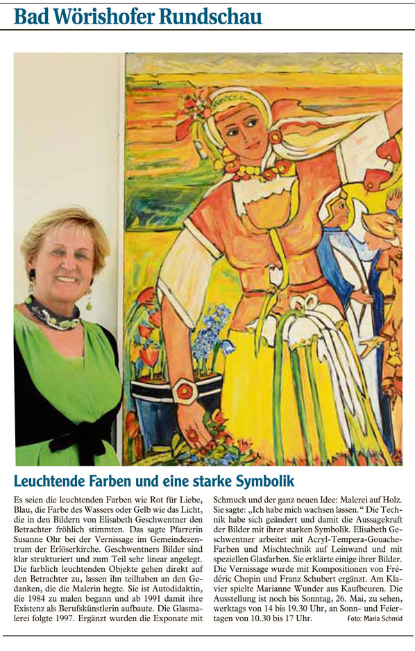 Auch die lokalen Pressevertreter besuchen mit großem Interesse die farbenprächtigen Ausstellungen der Künstlerin, die sich an dieser Stelle für die Anerkennung und den großen Zuspruch in der Berichterstattung bedankt.