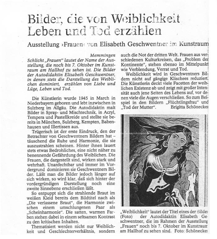 Ausstellung >Frauen< von Elisabeth Geschwentner im Kunstraum