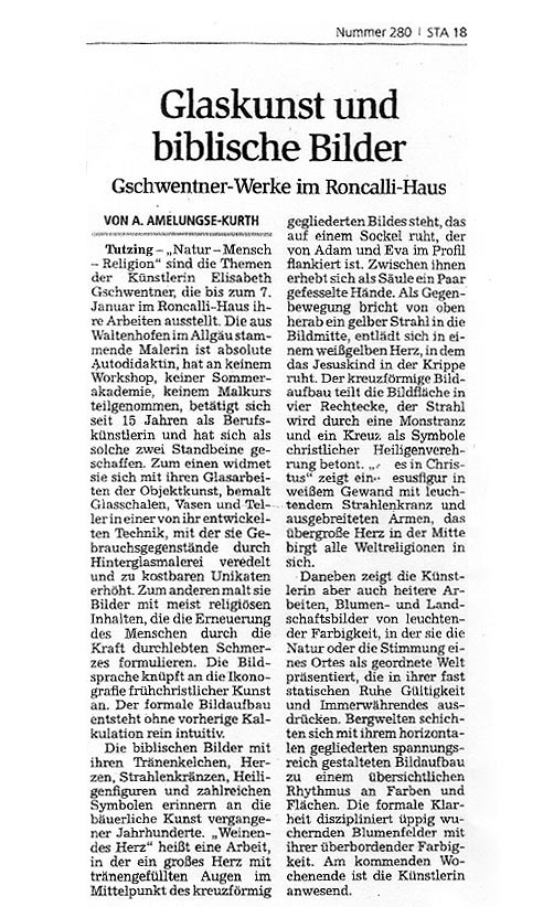 Elisabeth Geschwentner stellt im Tutzinger Roncalli-Haus ihre Bilder und Hinterglasmalerei aus