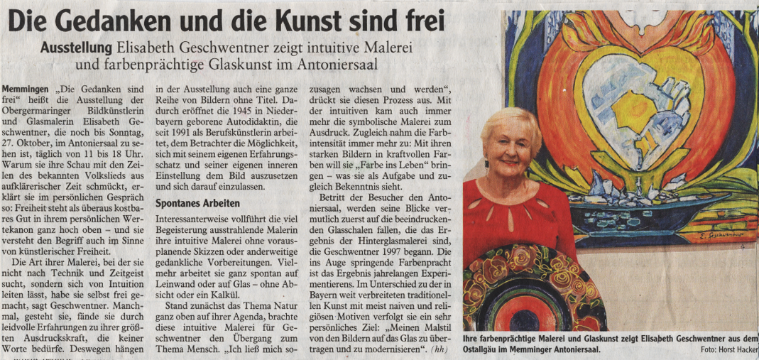 Elisabeth Geschwentner zeigt intuitive Malerei und farbenprächtige Glaskunst im Antoniersaal, Memmingen